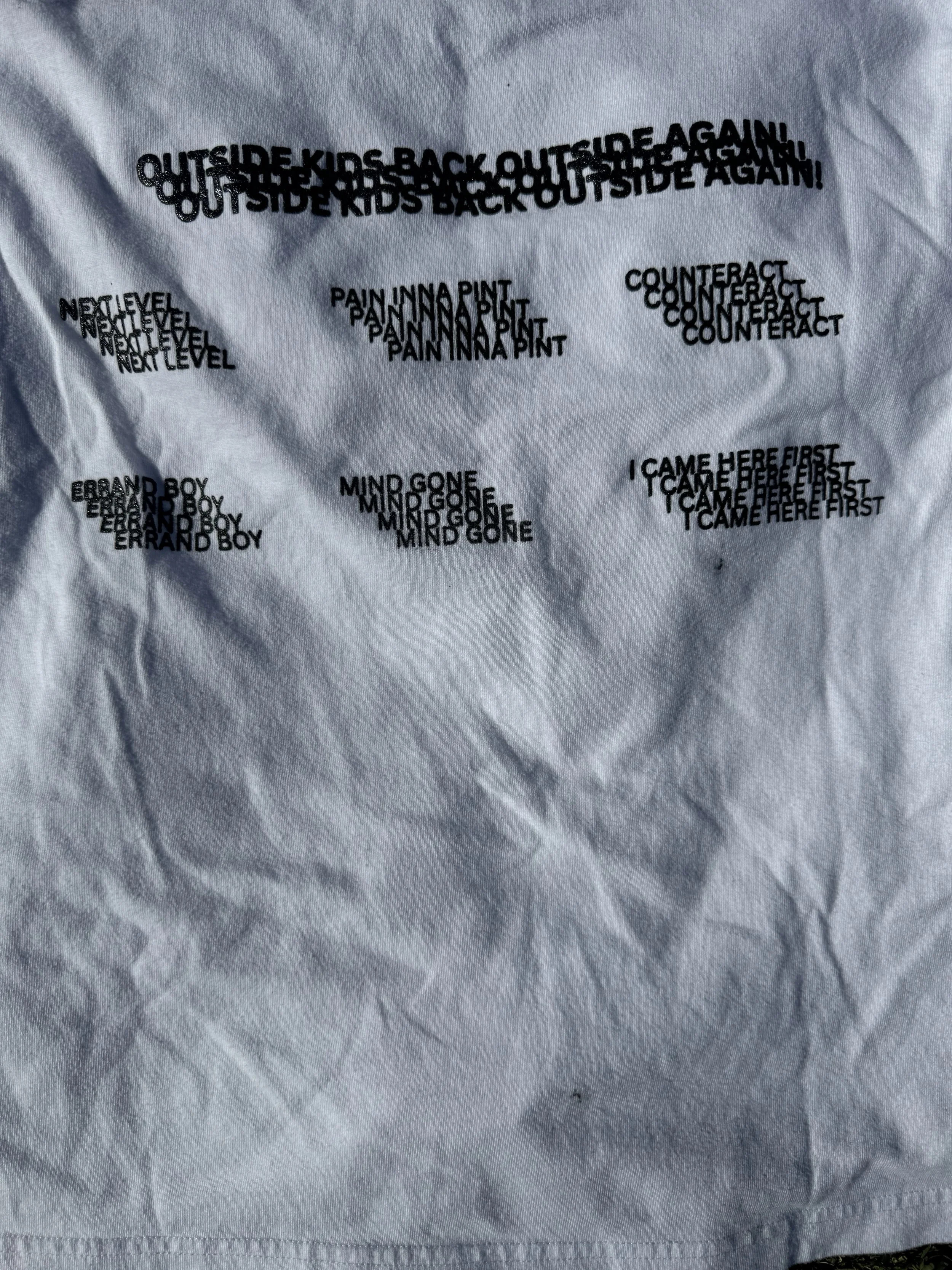 “Outside Kids Back Outside Again!” Vinyl $50.00 OKBOA! CAMO from $45.00 OKBOA! Long Sleeve Tee $40.00